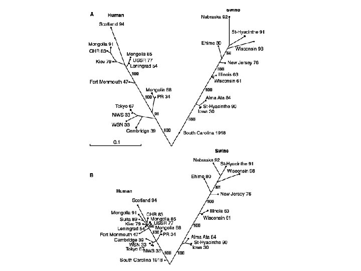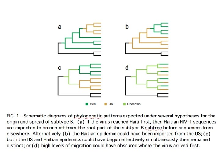 Phylogenetics interlude HIV Human • The evolutionary pattern in this HIV phylogeny is just like the pattern in human mt. DNA • In both, we see a subpopulation that has recently emerged from a more diverse “source” population • A few years of HIV evolution = 1 million years of human mt. DNA evolution