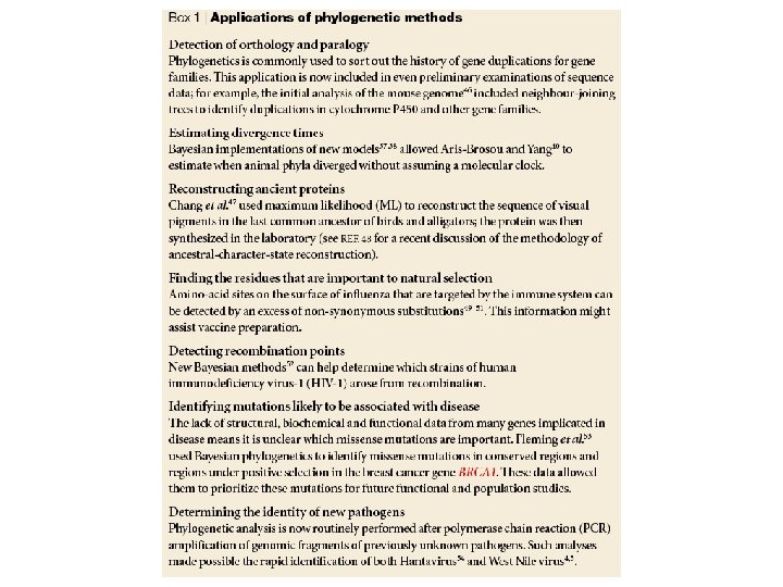 What can you do with trees beyond simply inferring relatedness? • Adey et al. (1994) resurrected an extinct ancestral promotor for a subfamily of retroposons that dispersed in the mouse genome several million years ago • The retroposons are no longer transcriptionally or transpositionally active • They hypothesized that the promoter may have accumulated deleterious mutations, used extant sequences to infer the ancestor • Chemically synthesized it and found it reawakened the retroposon