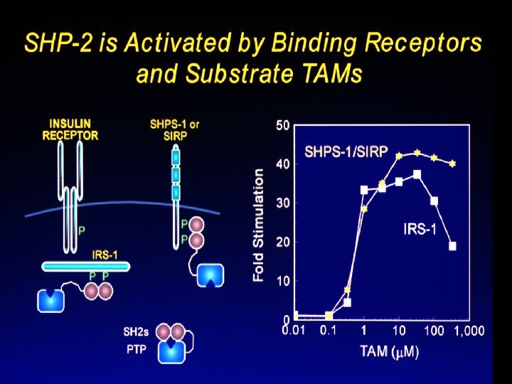 SHP-2 Tyrosine Phosphatase: N-terminal SH 2 domain blocks active site ==> catalytically inactive Phosphopeptide binding changes the shape of the N-SH 2 domain so that it no longer “fits” the PTPase ==> inhibition is released N + C binding contributes entropically