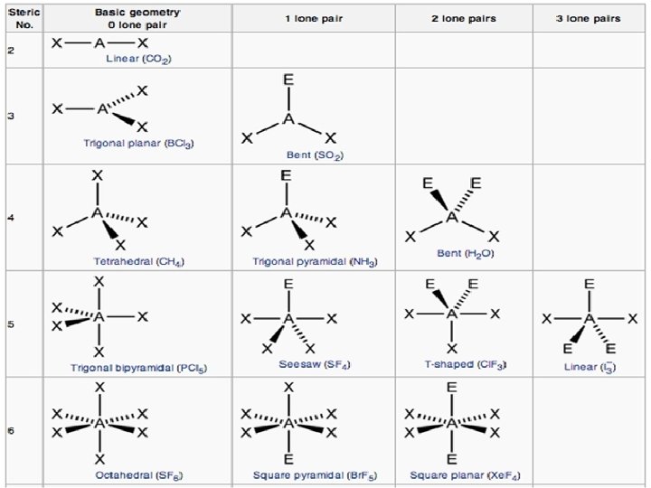 SHAPES – CURSORY INTRODUCTION - Both bonds AND lone pairs contribute to the final shape of a compound. - All shapes minimize steric interference (electrons shells overlap and repel). - When determining the shape of a compound, remember to account for the lone pairs on central atom(s).