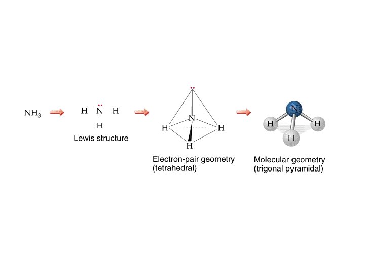 Predicting Molecular Geometries To determine the shape of a molecule, we distinguish between lone pairs (or non-bonding pairs, those not in a bond) of electrons and bonding pairs (those found between two atoms). We define the electron pair geometry by the positions in 3 D space of ALL electron pairs (bonding or nonbonding). The electrons adopt an arrangement in space to minimize e--e- repulsion.
