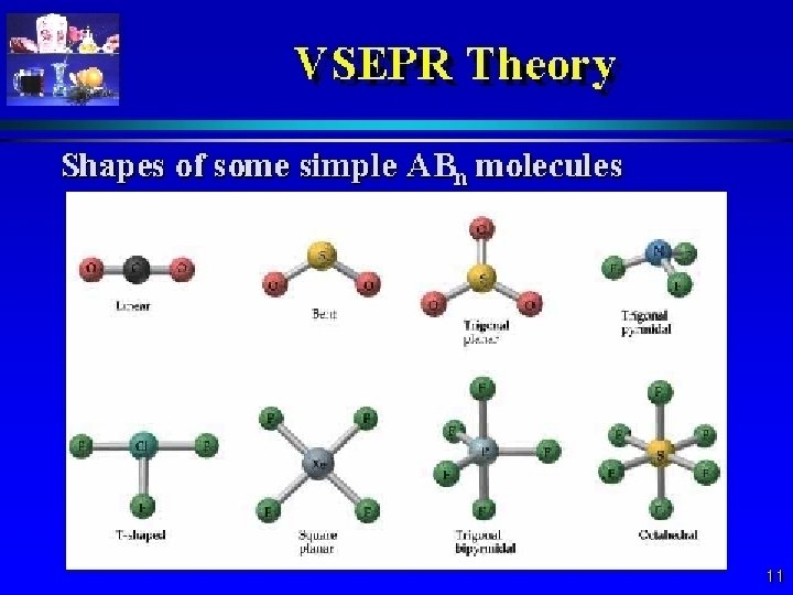 Exercise Use VSEPR rules to predict the shapes and geometries of the central atoms of the molecules on the handout
