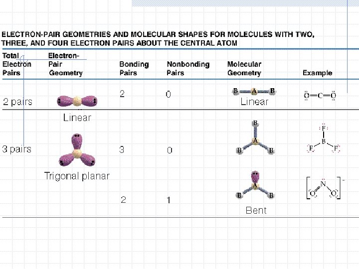Central Atoms with Only Bond Pairs AX 2 – Linear n n Be. F 2 180° AX 3 – Triangular-planar n n BF 3 120 °