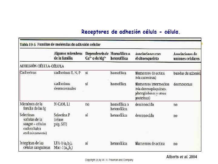 3. Integrinas l Algunas integrinas se unen a un tipo de macromoléculas de la matriz, como fibronectina o laminina; mientras que otras lo hacen con mas de una como en los fibroblastos que se unen a fibronectina, colágena y laminina. l Se asocian a filamentos de actina a excepción de α 6β 4 ubicada en hemidesmosomas.
