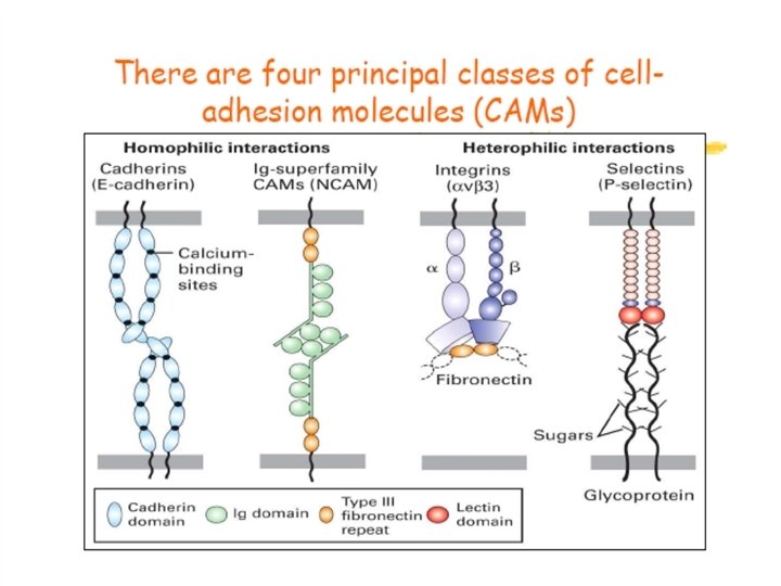 Moléculas de adhesión celular l Dos tipos distintos: una dependiente de Ca 2+ y otro independiente de Ca 2+. l Pueden ser monoméricas, diméricas y heterodiméricas. l Por el tipo de unión: homofílica y heterofílica.