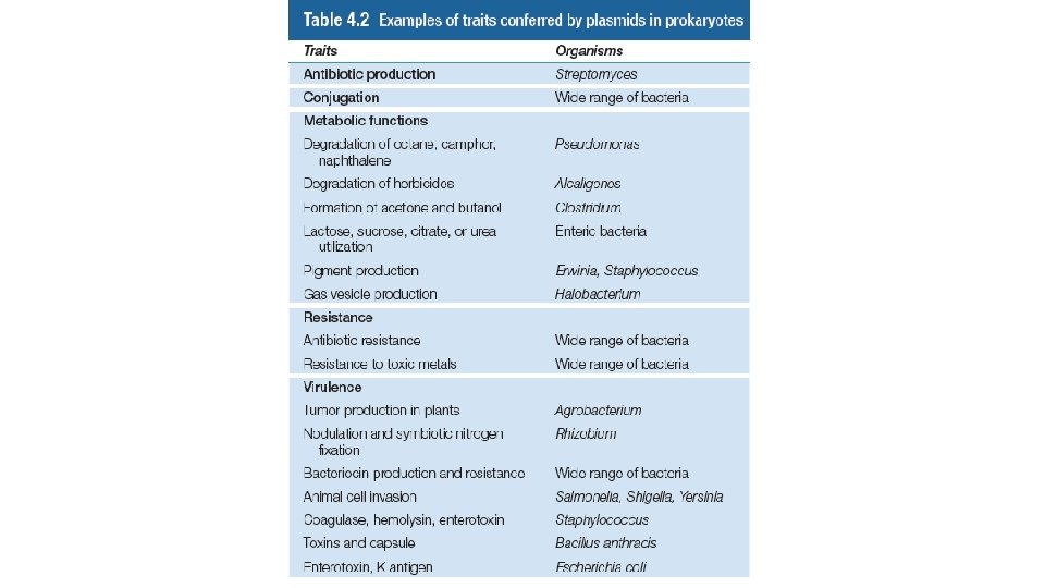 • Plazmit tipleri • Plazmitler konak hücrenin temel fonksiyonlarını kodlamakla birlikte taşıdıgı bazı genler ile konak hücrenin hücre fizyolojisini etkileyebilir. Plazmitlerin en yaygını ve en iyi calısanı antibiyotiklere karsı diren kazandıran R plazmitidir. Genel olarak direnc genleri tarafından kodlanan proteinleri antibiyotiklerin inaktivasyonunu sağlar ve hücreyi diğer bazı mekanızmalara karsı korur.