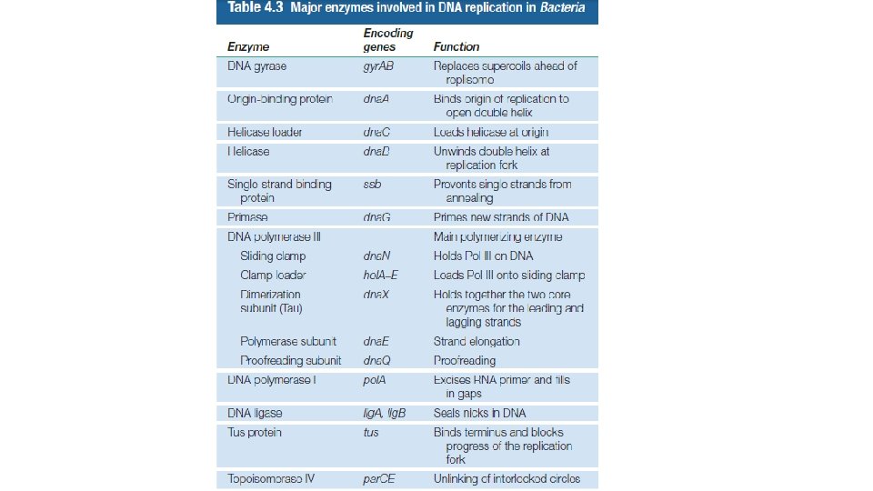 • Helikaz tarafından çift heliksin açılması ilerleyen replikasyon çatalının ön kısmında pozitif süper sarmal oluşur. Bunu engellemek için DNA giraz enzimi zincirin ileri kısımlarında oluşan pozitif süper sarmalın önüne geçebilmek için negatif süper sarmal oluşturarak rahatlatır. • Bakteriler DNA sentezinin başlatıldığı (Ori. C) repklikasyon orijini olarak adlandırılan kromozom üzerinde tek bir bölgeye sahiptir. Bu bölge spesifik 250 baz dizisinden olusan replikasyon başlatma proteinlerinin özelliklede Dna. A proteinin bağlana bildiği bir bölgedir.