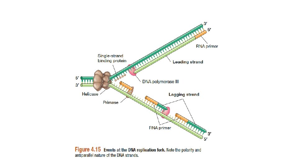 • DNA replikasyonu daima 3’ ucundan 5’ ucuna doğru ilerler yeni gelen nükleotitidin 5’fosfati daha önce ilave edilmiş 3’ hidroksil ine tutturulur. • Nükleotitilerin eklenmesini katalizleyen enzimler, DNA polizmerazlar olarak adlandırılır. Her biri özel fonksiyona sahip bunun gibi cok sayıda enzim replikasyonda rol oynar. Eshericia coli bakterisinde kromozomal DNA’nın replikasyonunda görevli 5 farklı enzim vardır. Bunlar; DNA polimeraz I, III, IV ve V enzimleridir. DNA polimeraz III(DNA pol III) kromozomal DNA nın replikasyonunda görev alan ilk enzimdir.