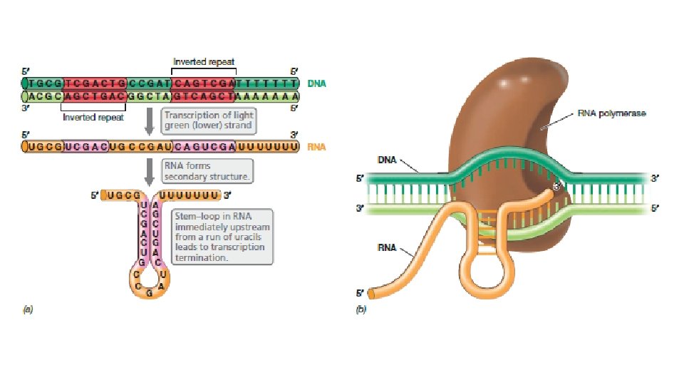 • DNA kalıbındaki adenin lerin takibi ile izlenen göve-halka olusumu etkili bir transkiprison sonlandırıcıdır. Bu yapı RNA ve DNA kalıbını bir arada tutan ve uzayan U: A baz çiftlerinin olusumu ile meydana gelir.