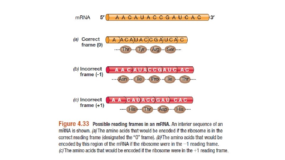 • Geleneksel olarak okuma çerçevesi transalasyona uğradığında oluşan polipeptidi kodlayan gene 0 çerçevesi denilir. Diğer iki olası okuma çerçevesi (-1 ve +1) aynı amino asit dizisini kodlamaz. Dolayısıyla ribozomun trasnlasyona başlamak için doğru başlangıç kodonunu bulması bir kere okuduktan sonra da m. RNA’nın tam olarak üç baz oalcak şekilde zamanında translokasyonu elzemdir.