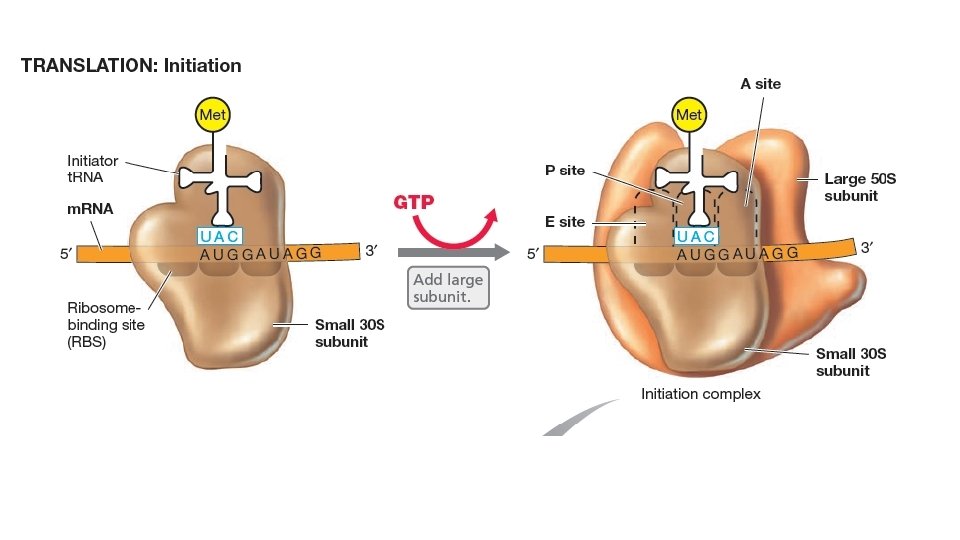 • Translasyonun baslangıcı her zaman baslangıc kodonu olan AUG’tye çzgül başlatıcı bir aminoaçil-t. RNA nın baglanması ile baslar. Bacteria ‘da bu formilmetiyonin-t. RNA’dır. Polipeptid tamamlandıktan sonra formil grubu cıkartılır. Sonuc olarak tamamlanmıs proteinin n-terminal amino asidi metiyonin olacaktır.