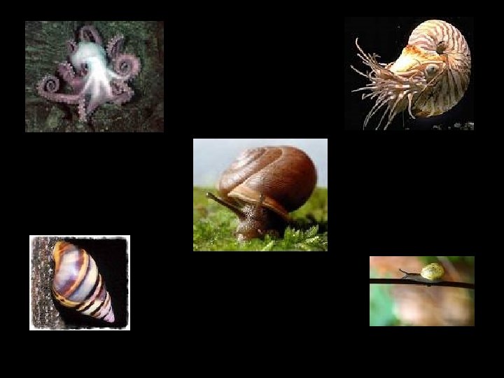 Gastropods: • One-shelled mollusks • Largest class • Stomach-footed (named for the way that the large foot is positioned under the body)