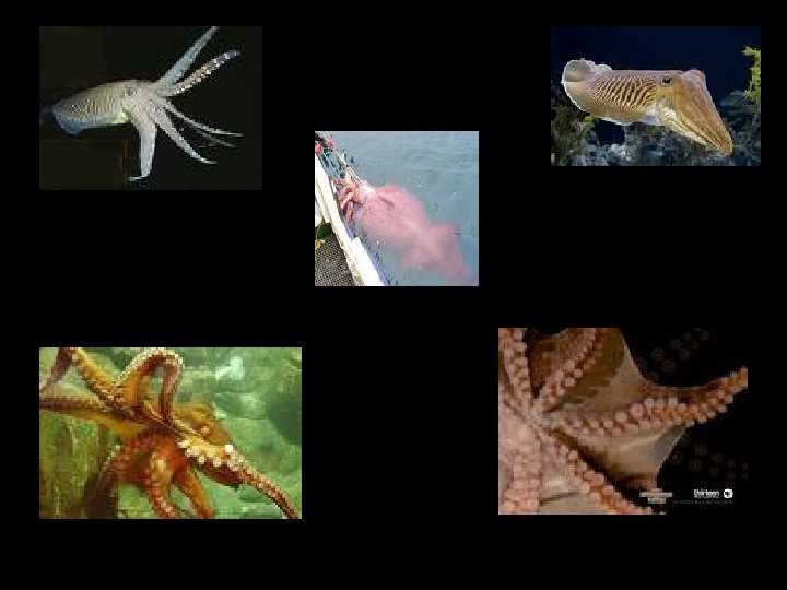 Cephalopods: • Head-footed mollusks • All marine