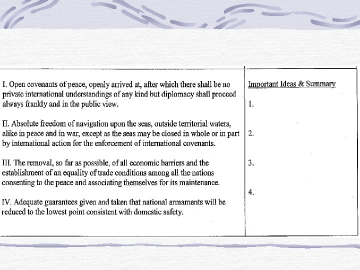 Monday 31317 Goal to analyze Wilsons Fourteen Points