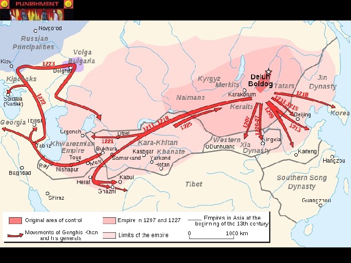 Order from Chaos • Genghis was known to be a great warrior and cunning politician • Coaxed some tribes to unite, forced others • Eliminated hierarchy of classes • Appointed most trusted and talented as leaders • Outlawed sale of wives and excused poor from taxes • Barred rape and plunder… unless given permission