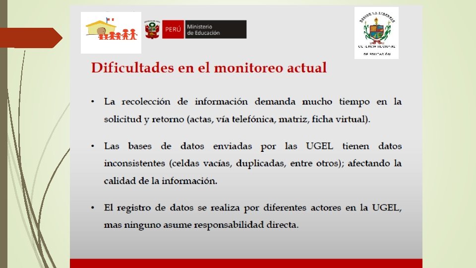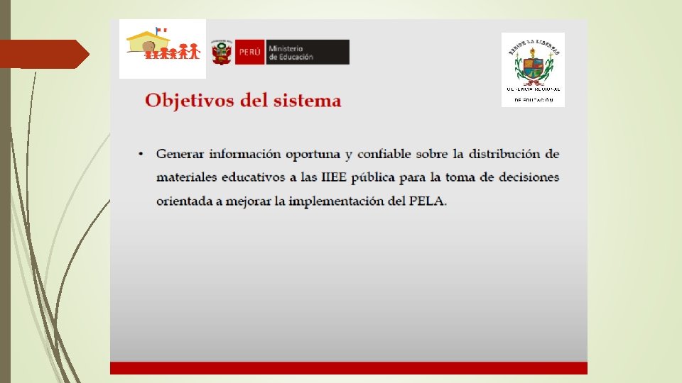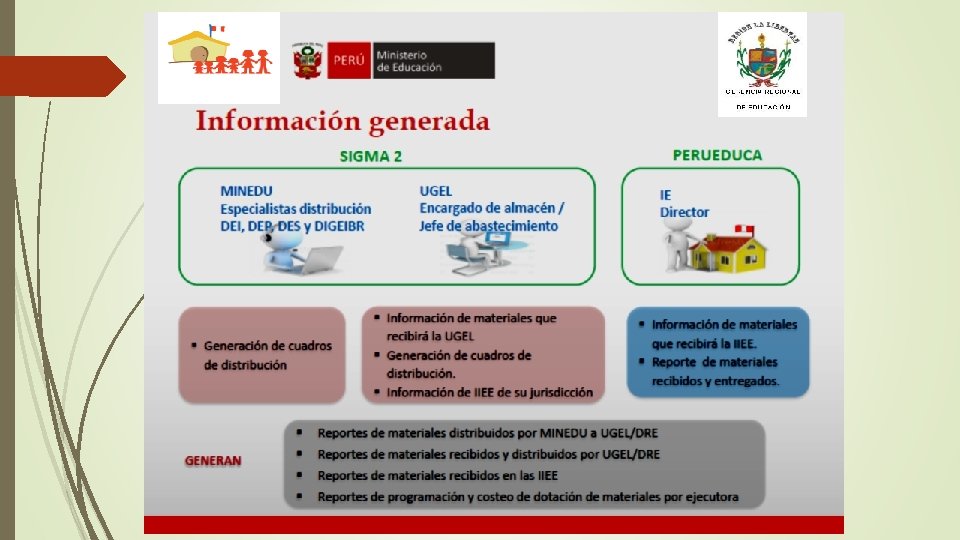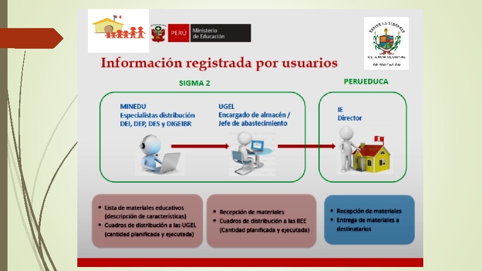 ¿Qué se espera lograr y con qué indicadores se mide? Llegada de materiales: OPORTUNA: Llegada de los materiales antes del 1 ero de abril SUFICIENTE: Núm. de materiales completos = núm. de estudiantes/aula del grado EN BUEN ESTADO: Material completo, legible, con marcas que pueden ser borradas, limpio, entre otros que permite el uso Porcentaje de instituciones educativas públicas cuyas aulas recibieron materiales suficientes, en buen estado y de manera oportuna. El indicador se evalúa para los diferentes materiales: textos, cuadernos de trabajo, material de aula e IIEE