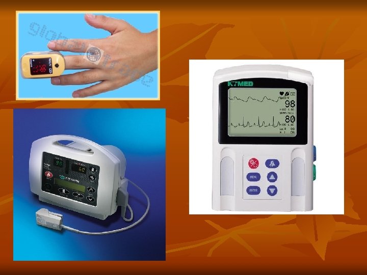 n n n Para evitar esto, si el oxímetro le permite, hay que observar que la curva dada en la pantalla, tenga la clásica curva de presión arterial. Además debemos observar que la frecuencia cardíaca del registro digital del oxímetro, corresponda a la frecuencia cardíaca observada en el monitor ECG. Como el principio de la oximetría de pulso es la diferencia en la absorción de luz entre oxihemoglobina y hemoglobina reducida, cualquier substancia que coloree la sangre como el azul de metileno puede dar resultados erróneos.