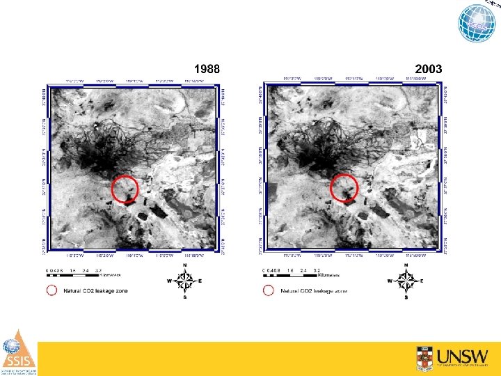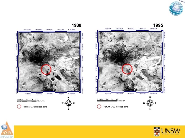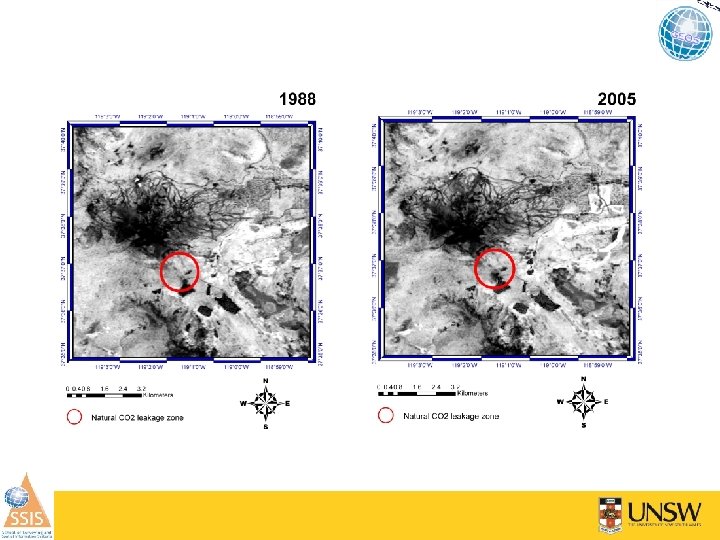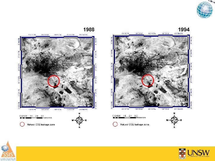 Using multispectal imagery 1. Large area coverage 2. Availability of data set: before and after event Objective To verify the usefulness of high altitude, low resolution Landsat TM image for monitoring natural CO 2 leakages in order to apply in real sequestration site