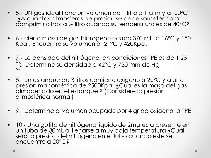 pregunta • • Considere los siguientes gases en condiciones TPE 2 kg de Hidrogeno 32 Kg de oxigeno 28 Kg de nitrógeno • ¿Qué volumen ocupa cada uno de ellos bajo estas condiciones?