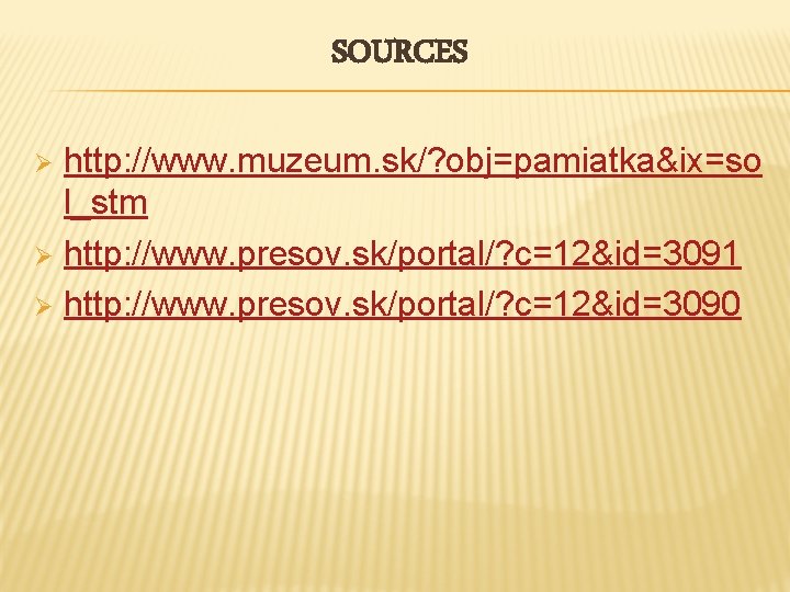 SOURCES http: //www. muzeum. sk/? obj=pamiatka&ix=so l_stm Ø http: //www. presov. sk/portal/? c=12&id=3091 Ø http: //www. presov. sk/portal/? c=12&id=3090 Ø