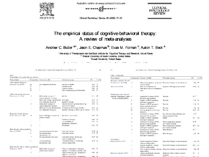 Effectiveness in Routine Care Dilution Mild dilution of RCT effects (Westbrook and Kirk, 2005) and higher relapse (Gibbons et al. , 2010) Replication of RCT effects (Brewin et al. , 2008; Foa et al. , 2005) and almost equivalent relapse (Di. Mauro et al. , 2013) Enhancement Improvement on RCTs (Ost, 2013)