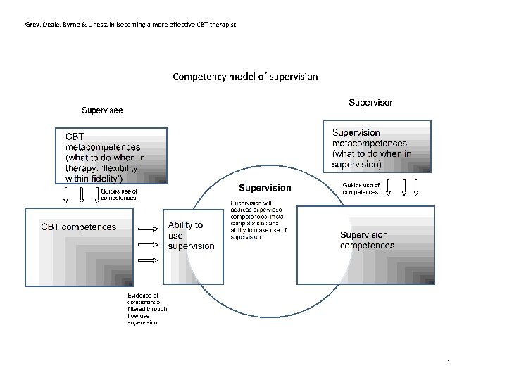 Supervision Learning Cycle Concrete Experience Roleplay in session. Try intervention with patient. Reflective Observation Active Experimentation What happened? Video / audio of therapy. Identify stuck point. What next? Plan intervention. Conceptualisation How can we understand this? Relate to theory and case formulation.