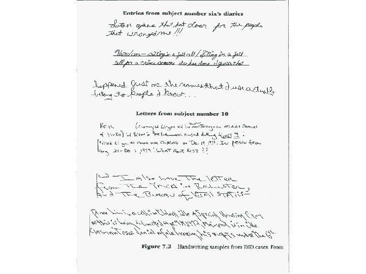 Symptoms of DID • The presence of two or more distinct identities or personality states • Control of the person’s behavior recurrently taken by at least two of these identities or personality states • An inability to recall important personal information that is too extensive to be explained by ordinary forgetfullness