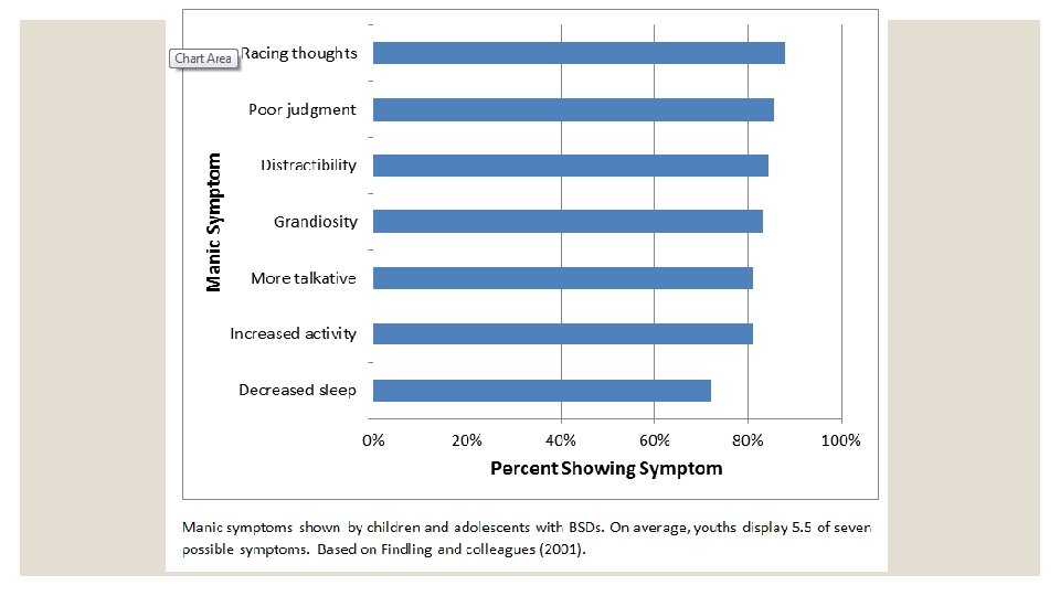 OTHER CHARACTERISTICS & COMMON EXPERIENCES ◦ Children and adolescents with bipolar disorder are at higher risk for: ◦ Substance abuse ◦ Suicide ◦ 44% of those diagnosed with bipolar attempt suicide, compared to 1. 2% in all adolescents