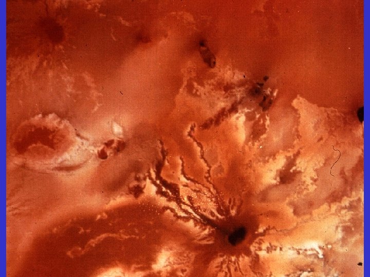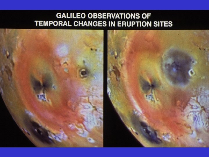 Interior of Io; density = 3. 55 gm/cc Iron-rich core Thin silicate crust Molten interior