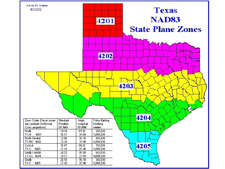Sistema State Plane • Originado por EUA. • Sistema de proyección: – Utiliza Transverse Mercator (proyección cilíndrica) en estados que corren de norte a sur. – Utiliza Lambert Conformal Conic en estados que corren de este a oeste. • En PR, las unidades de State Plane son metros o pies; en el resto de EUA originalmente en pies pero se están cambiando a metros.