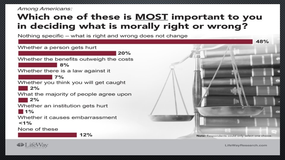WHY MORALS ARE BEST EXPLAINED BY GOD • MORALS BASED ON VARIABLES LIKE TIME, PLACE AND CULTURE LACK ANY SORT OF COMMON STANDARD BY WHICH GOODNESS CAN BE MEASURED. • WITH NO UNIVERSAL STANDARD MULTIPLE PEOPLE CAN LOOK AT THE SAME ISSUE WITH OPPOSING VIEWPOINTS & BOTH THINK THEY ARE MORALLY RIGHT. CHAOS! • ONLY GOD PROVIDES THE STANDARD BY WHICH OUR ACTIONS CAN BE CONSIDERED MORALLY GOOD. • GOD PROVIDES US A FRAMEWORK BY WHICH WE OUGHT TO MAKE OUR DECISIONS. GOD’S WORD, THE BIBLE IS OUR MORAL COMPASS.