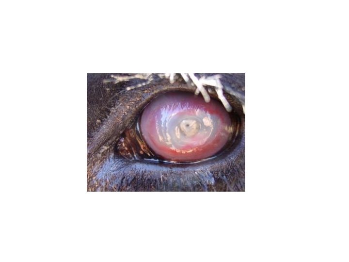 Klinik • Tek gözde başlar, diğerine geçebilir • İnkubasyon süresi; 3 -5 gün • Blefarospazm, fotofobi, epifora (göz sulanması) ve seröz göz yaşı akıntısı, konjunktiva hiperemik ve ödemli. Daha sonra akıntı prulent hal alabilir, korneada bulanıklaşma ve ülserler şekillenir. Görme azalır ve kaybolur • İyileşme aşamasında, ülser katının üzerinde granülasyon dokusu oluşur ve karakteristik kırmızı koni şeklini alan granülasyon dokusu kornedan taşar.