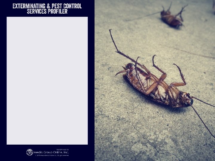 More People, More Pests, More Profits ü According to PCT (Pest Control Technology), the US professional pest control industry generated $8. 175 billion in 2016 revenues, a 4. 6% increase over 2015 revenues. There approximately 19, 820 pest control firms in the US. ü The increase was due to mild summer and winter weather, which increased the incidents of insects and rodents. Pest control companies also increased revenues by adding services, such as mosquito control. ü The global insect pest control market is forecasted to increase from $12. 46 billion during 2016 to $17. 3 billion by 2022, according to Marketsand. Markets research firm.