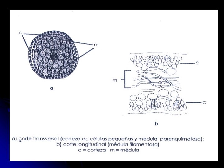 Hueco: talo sin medula no posee filamentos o con medula pero sin región central.