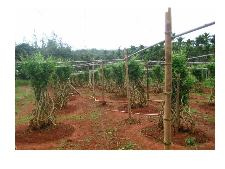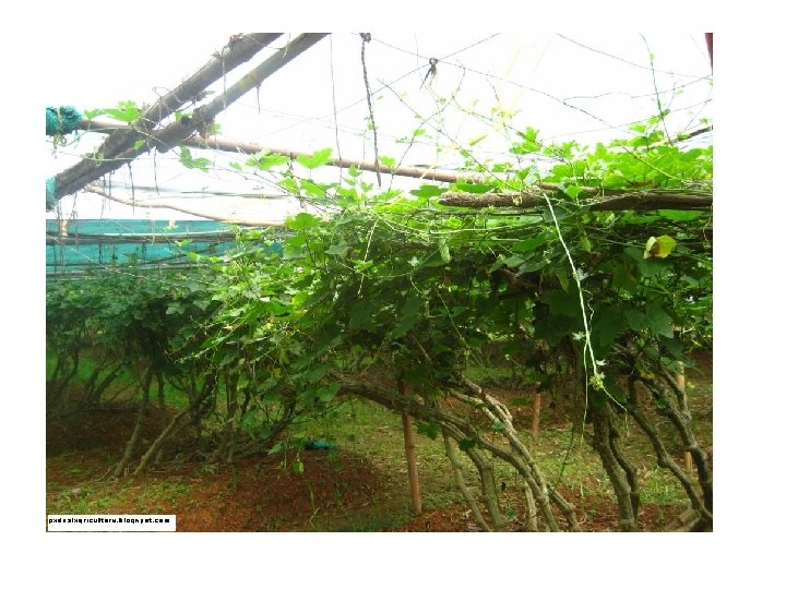 ØImportant varieties are Indira Kundru 5, Indira Kundru 35, Arka Neelachal Kunkhi, Arka Neelachal Kirti, Arka Neelachal Sabuja, kasha Suphal ØPropagated by stem cutting. ØStem cutting with 12 -15 cm long, pencil thickness having 5 -6 leaves are taken. ØPlanted in basins of 60 cm diameter dug 3 m apart and put 5 kg FYM. ØPlanting in June-July or February-March ØPlant population should have at least 10% male plants. ØVines are often trained on Bower or Bamboo structures. Ø 60: 40 kg NPK/ha. Half N + Full P and K at planting time and rest of N in 4 equal splits. ØRequires good quantity of water, but cannot tolerate stagnation ØPruning of vines is most important. ØRepeated pruning of vines must be done when look a bit weak and leaves turn yellow i. e. every 3 to 4 months to maximize yield (newly developing vines produce more flowers & yield). ØFlowering start after 50 -60 days of planting and average yield is 10 -15 t/ha.