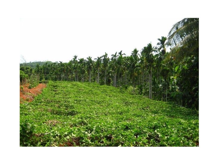 ØSeed should be pulped with in 3 -4 days of fruit collection and is sown in nursery. ØFYM 20 t/ha. ØPlanting at 1. 2 -1. 5 m in 30 cm 3 pit while for low fertile soil spacing is 90 cm X 90 cm. ØPlanting is done in May-June. ØTerminal bud is allowed to grow up to 1 m height and later cut off to encourage basal branching to maintain plant in a bushy state (Topping) and to encourage maximum leaf production. ØPruning or topping is also a part of harvesting of leaves. ØLeaf quality decreased if the plant is allowed to flower and fruit. ØFirst harvest starts 10 -12 months after planting and yield is 250 -400 kg leaves/ha ØAfter 5 years, yield is 5000 kg/ha once in 3 months.