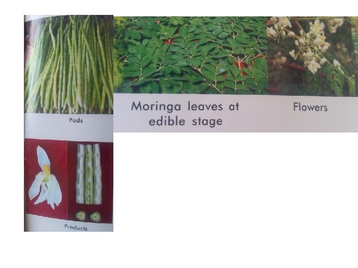 Climate • • Grown from sea level to 1800 a. m. s. l. Dry, warm and semi-arid conditions are congenial. Performs best at 25 -350 C. Highly susceptible to frost and high temperature exceeding 400 C. Soil • • Sandy loam soils Most suitable p. H around 6. 5 Good drainage Water logging and heavy clay soils are not suitable. Propagation/Sowing • • Perennial Moringa - stem cuttings (limb cutting)(100 -150 cm with 14 -16 cm dia) Annual Moringa - seed. Seed rate: 500 g/ha is sown in nursery. Seedlings of height 15 -20 cm are ready for planting in 6 -8 weeks of sowing.
