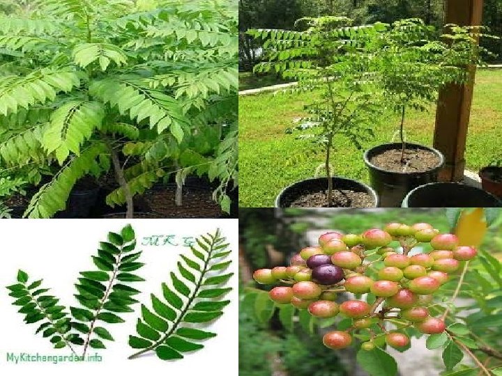 ØAlthough found in the wild, also widely cultivated for its aromatic leaves and as an ornamental. ØUsed for culinary and medicinal properties. ØAn important ingredient in South Indian and Sri Lankan cuisine ØSpicy leaves of plants are used extensively for seasoning and flavouring dishes. ØLeaves are rich source of Ca but its nutritional availability is affected due to presence of oxalic acid in high concentration. ØImportant varieties are Sen Kaampu, DWD-1 and DWD-2 ØRed sandy loam with good drainage is the ideal soil though can be grown in wide range of soils. ØTolerate maximum temperature 26 -37° C ØPropagation through small suckers from base of tree or by root cutting or by seed.