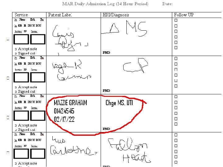 HPI • History obtained from EMS, patient lives alone, called 911 claiming that there were people walking through her walls. Vitals stable during transportation. • Patient knows it’s cooper and obama is president but thinks it’s 1996