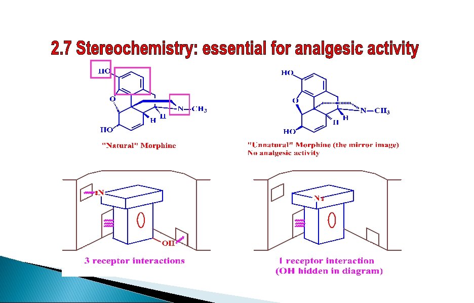 E E E U U 2. 8. 1 essential U H-bond phenolic OH Van der waals Ar ionized nitrogen center Stereoisomer analgesic activity 2. 8. 2 unessential : The ether bridge, -OH, Ionic bonds U