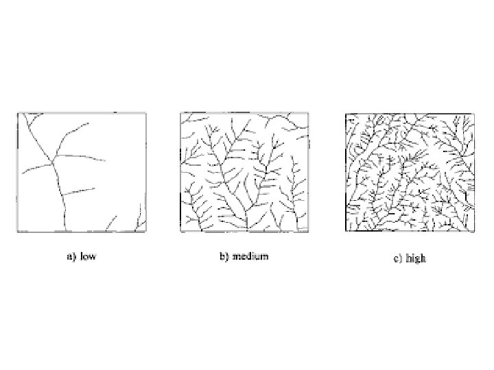 Drainage Density • Drainage density is the total length of all the streams and rivers in a drainage basin divided by the total area of the drainage basin. It is a measure of how well or how poorly a watershed is drained by stream channels • (Length of stream per unit area)