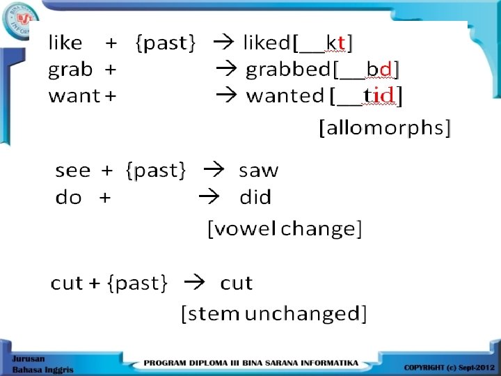 ![Morphs and Allomorphs [a book an egg] 1. cats bags 2. liked grabbed wanted Morphs and Allomorphs [a book an egg] 1. cats bags 2. liked grabbed wanted](https://slidetodoc.com/presentation_image_h2/2b1fee6e729e1213680564b5fc3a2dc7/image-20.jpg)