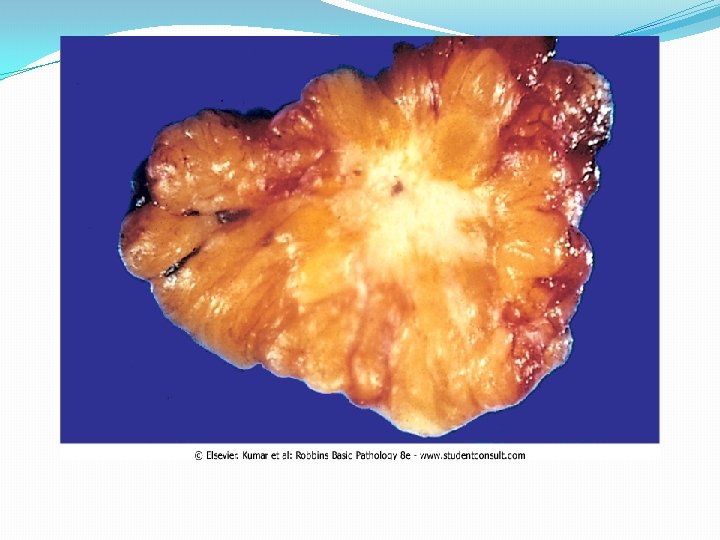 Invasive lobular carcinoma � Definition. Invasive cancer that consists of cells morphologically identical to the cells of LCIS. � comprise fewer than 20% of all breast carcinomas. � Precancerous lesion. 2/3 of the cases adjacent LCIS. � Lobular carcinomas are also more frequently multicentric and bilateral (10% to 20%). � Microscopic picture. The cells invade individually into stroma and are often aligned in strands or chains. � Clinical presentation. Most present as palpable masses or mammographic densities, a significant subgroup may have a diffusely invasive pattern without a desmoplastic response and may be clinically occult. � Lobular carcinomas, more frequently than ductal carcinomas, metastasize to cerebrospinal fluid, serosal surfaces, gastrointestinal tract, ovary and uterus, and bone marrow. � Almost all of these carcinomas express hormone receptors, but HER 2/NEU overexpression is very rare or absent.