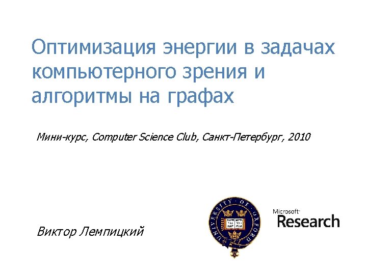 Related work and Resources (including those used to prepare the slides) Victor S. Lempitsky, Yuri Boykov: Global Optimization for Shape Fitting. CVPR 2007 The Stanford 3 D scanning repository, http: //graphics. stanford. edu/data/3 Dscanrep/ Yuri Boykov, Marie-Pierre Jolly: Demonstration of Segmentation with Interactive Graph Cuts. ICCV 2001: 741 Vladimir Kolmogorov, Ramin Zabih: What Energy Functions Can Be Minimized via Graph Cuts? IEEE Trans. Pattern Anal. Mach. Intell. 26(2): 147 -159 (2004) Yuri Boykov, Olga Veksler, Ramin Zabih: Fast Approximate Energy Minimization via Graph Cuts. IEEE Trans. Pattern Anal. Mach. Intell. 23(11): 1222 -1239 (2001) ECCV 2006 Tutorial on Graph Cuts versus Level Sets: http: //www. csd. uwo. ca/~yuri/Abstracts/eccv 06 -tutorial. html Aseem Agarwala, Mira Dontcheva, Maneesh Agrawala, Steven M. Drucker, Alex Colburn, Brian Curless, David Salesin, Michael F. Cohen: Interactive digital photomontage. ACM Trans. Graph. 23(3): 294 -302 (2004)