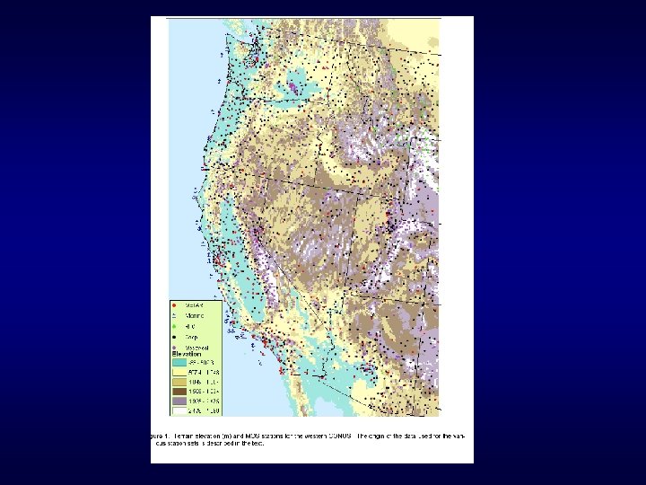 The Method § Calculate model biases at observation locations by interpolating model forecasts to observation sites. § Identify a land use, elevation, and lat-lon for each observation site. • Calculate biases at these stations hourly. Thus, one has a data base of biases. • For every forecast hour: At every forecast grid point search for nearby stations of similar land use and elevation and for which the previous forecast value is close to that being forecast at the grid point in question. . – E. g. , if the forecast temperature was 60, only use biases for nearby stations of similar land-use/elevation associated with forecasts of 55 -65. • Collect a sufficient number of these (using closest ones first) to average out local effects (roughly a half dozen). Average the biases for these sites and apply the bias correction to the forecast.