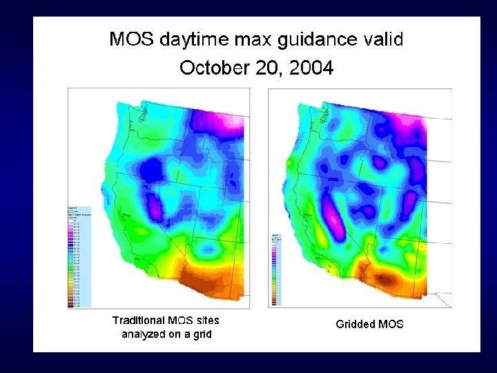 Grid-Based Bias Removal • In the past, the NWS has attempted to remove these biases only at observation locations (MOS, Perfect Prog)--exception…gridded mos recently • Removal of systemic model bias on forecast grids is needed. Why? – All models have significant systematic biases – NWS and others want to distribute graphical forecasts on a grid (IFPS) – People and applications need forecasts everywhere…not only at ASOS sites – Important post-processing step for ensembles