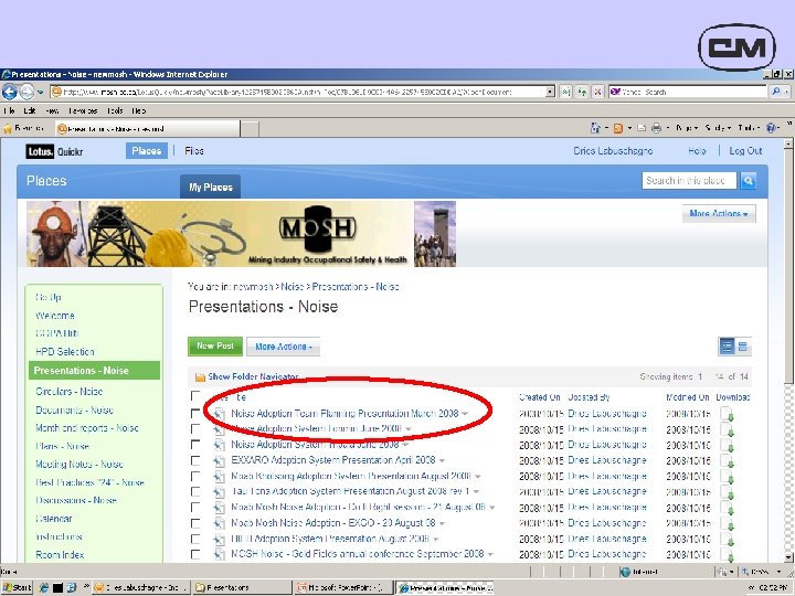 MOSH ADOPTION SYSTEM NOISE TEAM Outline of Community of Practice for Adoption (COPA) Operation Dries Labuschagne 24 November 2010