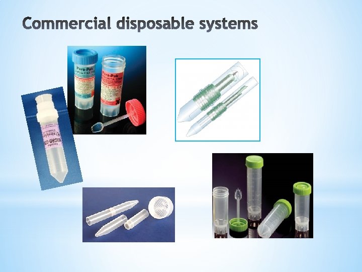 *Meridian Bioscience * Different closed systems, need for Ethyl Acetate * Ecofix without Formalin, but dangerous *Parasep SF (Solvent Free) - Apacor * Two closed formats, do not require Ethyl Acetate * Saf. EFix fixative, without Formalin, can produce skin allergy