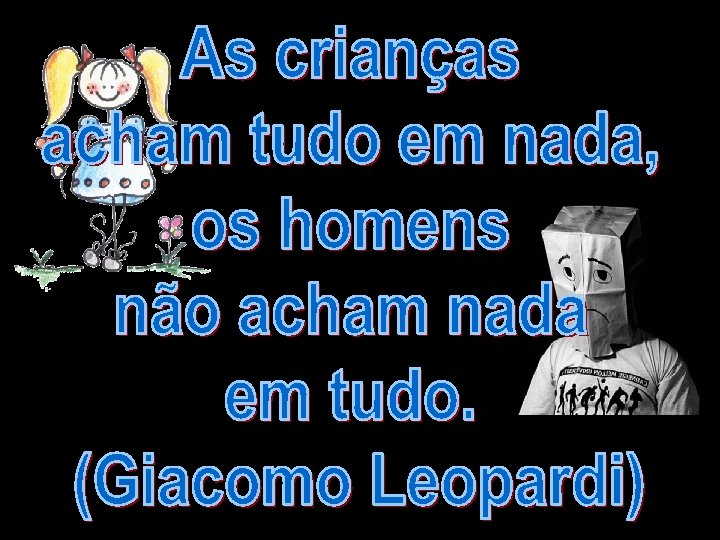 Quem gostou da brincadeira? Esconde, esconde, mente. . . Quem quedou-se na cadeira? Quase infarto de repente. . . Quero ser quando criança menos bobo, menos eu. Quero voltar para infância e ver que a vida me perdeu. (continua)