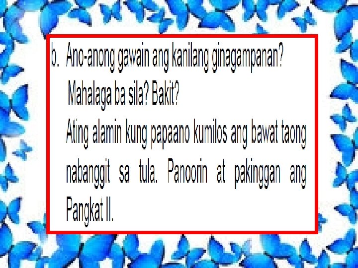 Gng. Tiñana kung siya ay tawagin, Laging inihahanda ang mga aralin, Si Dr. Pestijo na handang gamutin Sakit sa katawan, sa iyoman o sa akin 6. Sino ang gurong tinukoy sa tula? 7. Ano ang kanyang gawain? 8. Sino ang handang gumamot sa ating sakit? 9. Kung naging katulad ka nila, gagawin mo din ba ang kanilang ginawa? Bakit? 10. Paano mo ipakikita ang pagpapahalaga sa mga tao sa iyong barangay na naging matagumpay?